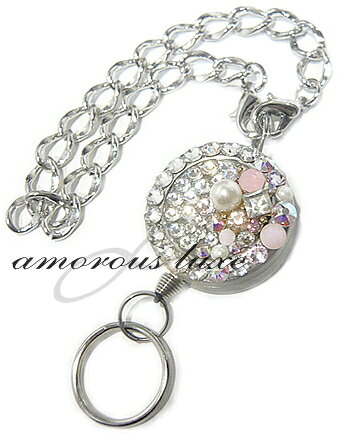 スワロフスキー社クリスタルでデコレーションされたキラキラリールキーホルダー! バッグ金具やハンドル(持ち手)、ファスナートップ、ベルトループetc...にキーホルダーを装着したままで、鍵やID・パスケース・認証カード・入館証などなど使用可能☆
