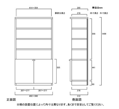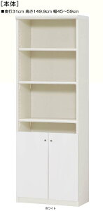 商品仕様 ■タイプ: 扉付 標準棚板(棚板厚さ1.7cm)タイプ 両開き ■棚板耐荷重: 4Kg ■外寸: 奥行31cm×高さ149.9cm×幅45〜59cm (幅は1cm単位でオーダーできます) ■外寸(幅): 45cm 46cm 47cm 48cm 49cm 50cm 51cm 52cm 53cm 54cm 55cm 56cm 57cm 58cm 59cm ■扉高(実寸): 52.5cm ■棚板枚数 移動棚板:2 移動固定棚板:2 共通仕様 ■材質: プリント化粧繊維板 ■塗装: ウレタン樹脂塗装 ■素材: ホルムアルデヒドの発生を最小限に抑えた基材・芯材・プリント紙・接着剤(F☆